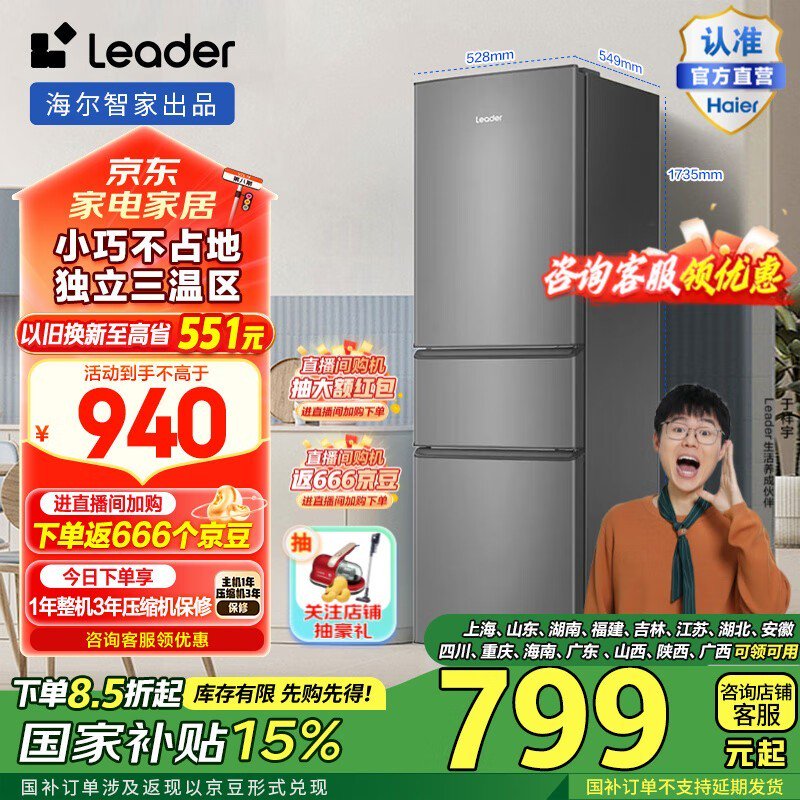 统帅三门冰箱218L小巧节能静音租房小家庭必备