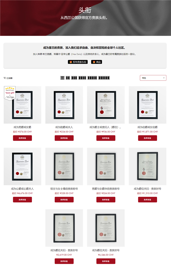 需要提醒的是,“西兰公国”并不是国际法所承认的国家,它所颁发的爵位也没有任何实质意义。