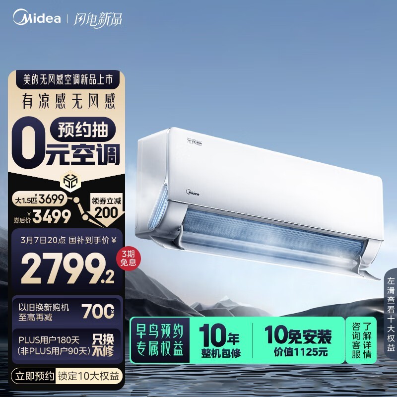 美的无风感空调大1.5匹卧室款京东促销到手价2737元