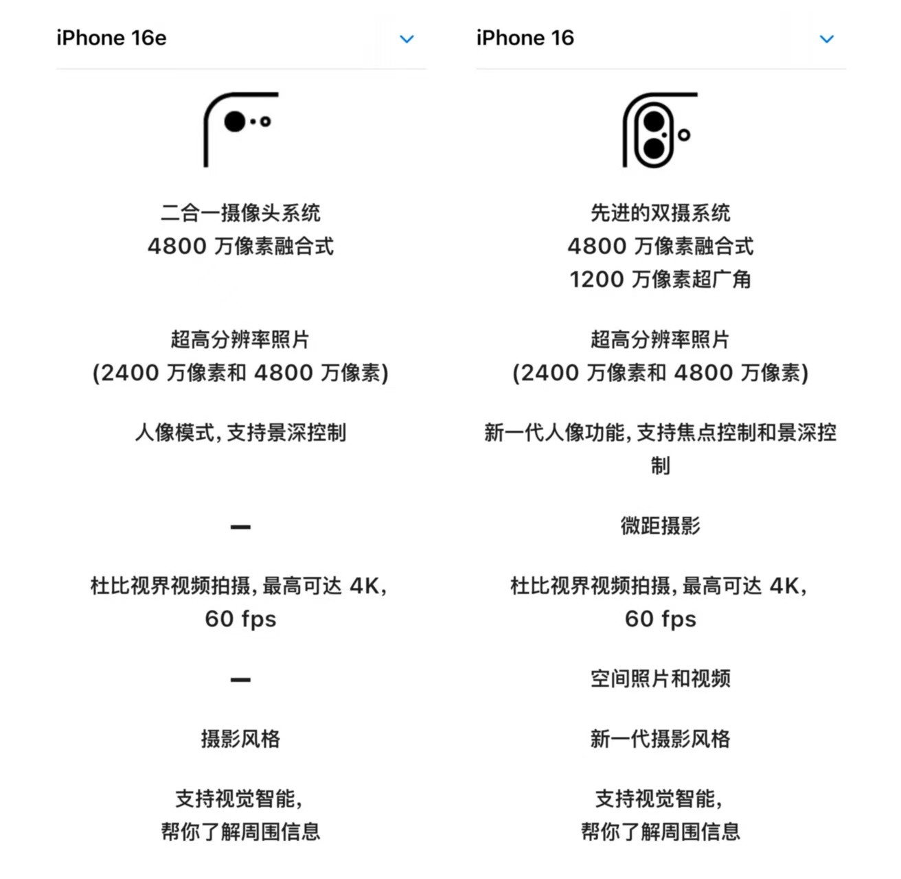 在相机上狠狠砍一刀,iPhone 16系列特色的相机控制按键自然也就没什么存在的必要了,iPhone 16e顺理成章地砍掉了这个按键。