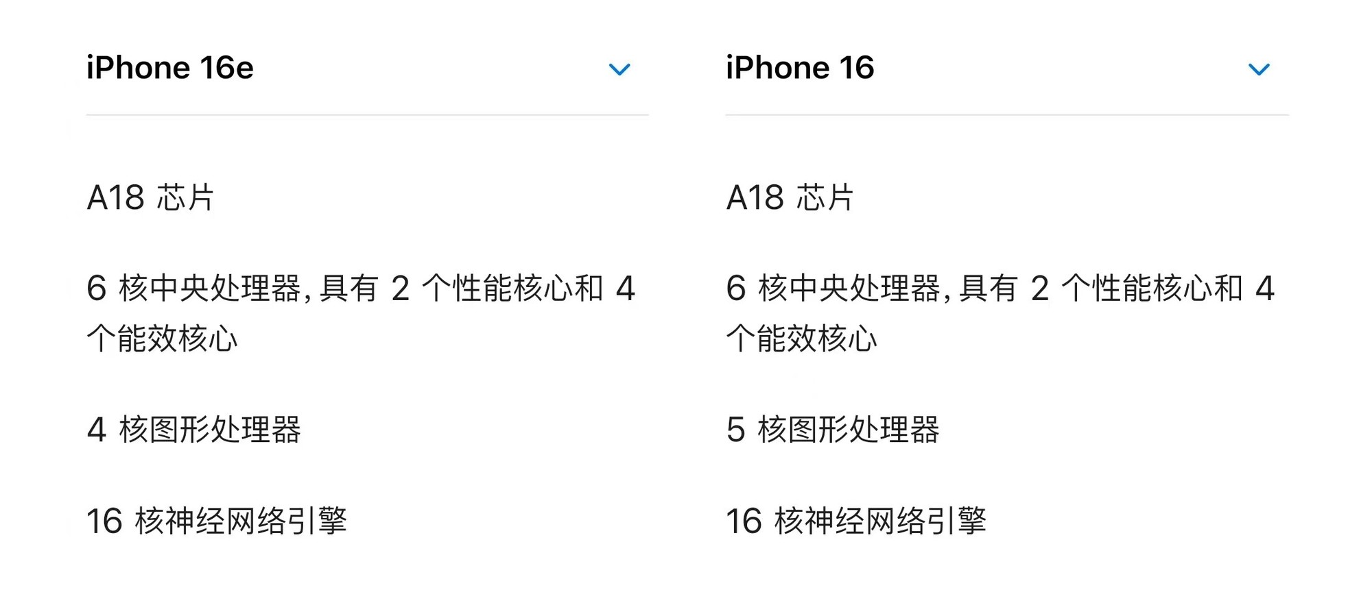 虽然搭载的都是苹果A18芯片,但iPhone 16e在芯片上也进行了区隔,其搭载的A18只有4核心图形处理器。这也就意味着手机游戏性能的下降。
