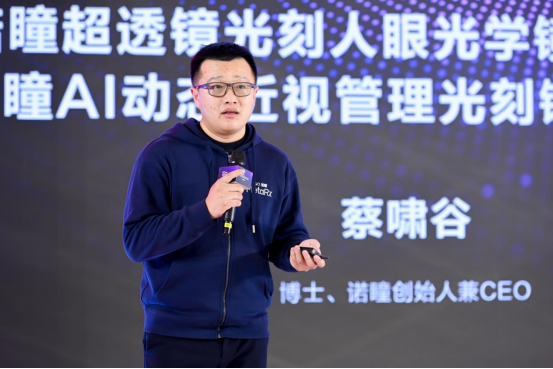 在启动仪式结束后,诺瞳奕目医疗科技有限公司CEO、首都医科大学眼科学博士蔡啸谷先生上台,为大家详细解读Meta Rx™光刻系统的技术亮点与应用场景。