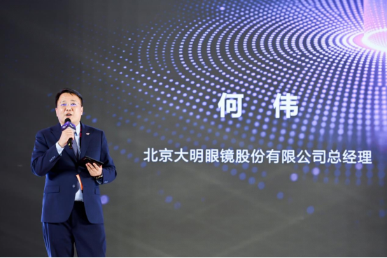 接下来,北京大明眼镜股份有限公司总经理何伟先生登台发表致辞。他从眼镜零售行业的角度,分享了对Meta Rx™光刻技术的看法和期待。