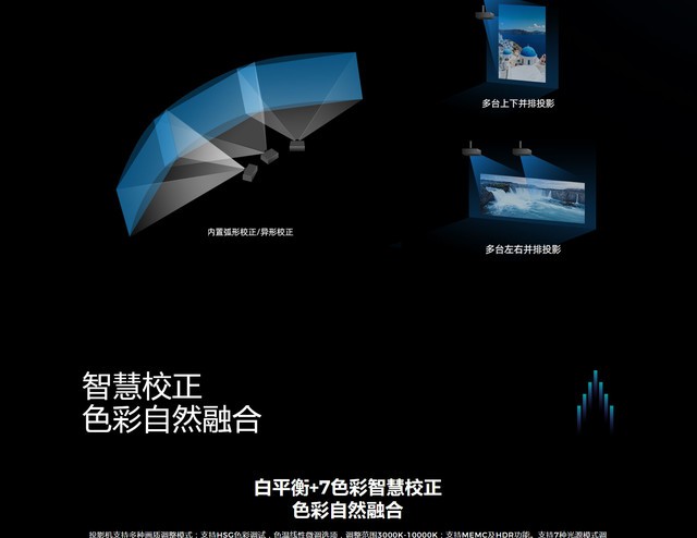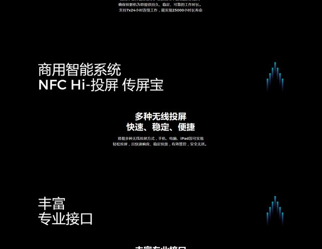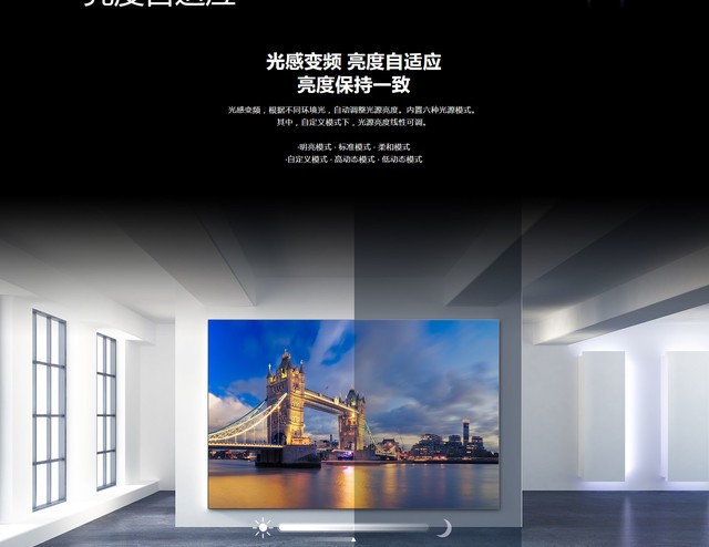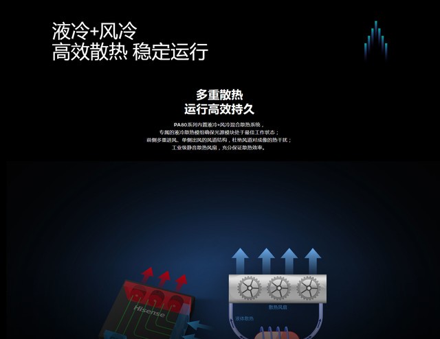 (中关村在线 四川行情)海信PA80新款工程投影机,采用DLP激光投影技术,0.65英寸DMD芯片,标准分辨率为3840x2160(4K),8000ANSI流明高亮度,3000000:1超高对比度,60Hz刷新率,清晰明亮久看不累,光源寿命更是长达25000小时。电动变焦,自动聚焦,投射比为1.4-2.5:1,投影尺寸60-500英寸,支持手动几何校正、拍照校正、多点校正、弧形校正、可选内置融合。PA80搭载多种无线投屏方式,手机、电脑、iPad皆可实现轻松投屏,且快速响应、稳定投放,有效管控,安全无扰。