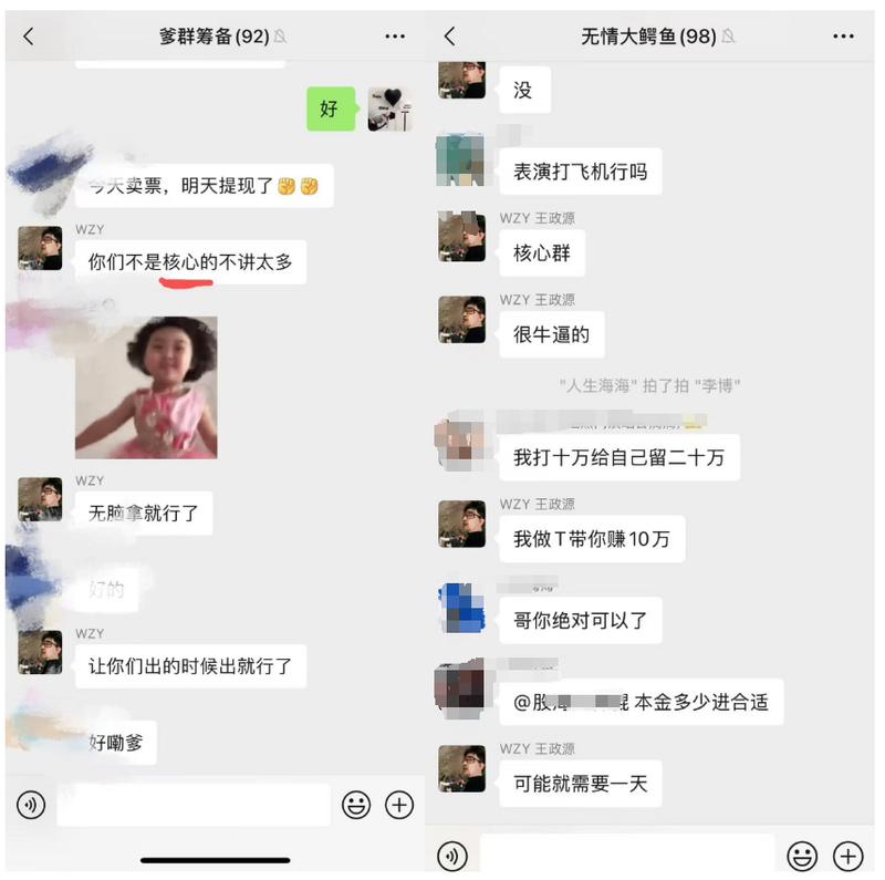 以“粉丝群”为名,王政源开始带着群友炒股。