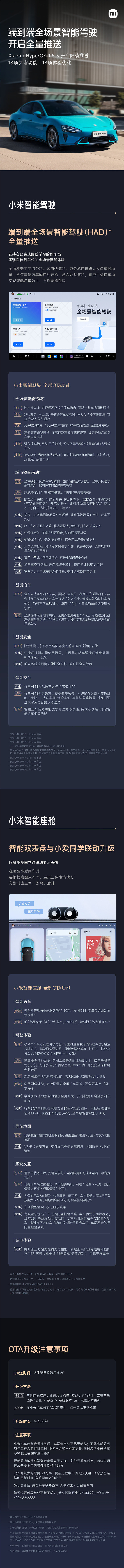 【CNMO科技消息】2月25日,小米汽车官方发布消息,HyperOS 1.5.5系统现已开启陆续推送,此次升级带来了多达18项新增功能和18项体验优化,进一步提升了用户的驾驶体验。其中,最引人注目的当属端到端全场景智能驾驶(HAD)的全量推送。