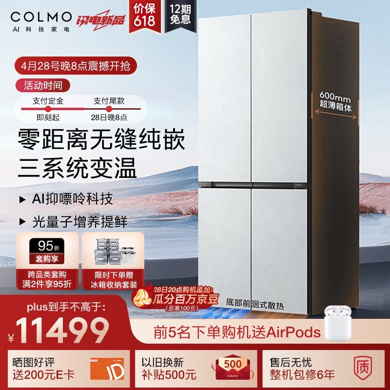 COLMO十字对开冰箱535升画境系列嵌入式设计三循环无霜静音节能