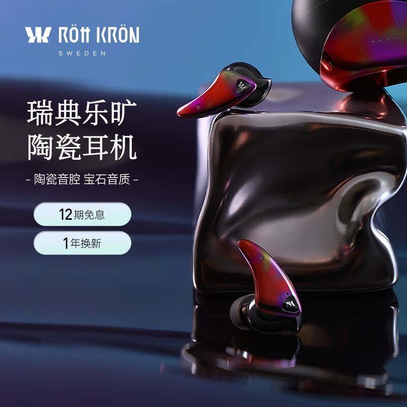 乐旷R?tt KR?N真陶瓷蓝牙耳机北欧设计主动降噪TWS耳机