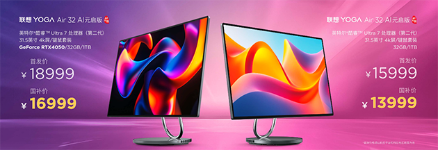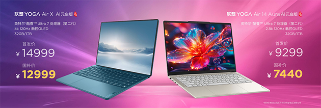 此次YOGA 带来的一系列新品以极具竞争力的价格与权益组合,为用户提供从硬件升级到服务保障的全方位支持。四款重点机型中,YOGA Air 14 Aura AI元启版国补后7440元;YOGA Air X AI元启版国补价12999元;YOGA 360系列中,YOGA 360 14 AI元启版国补价8000元;YOGA 360 14 Aura AI 元启版国补价格10999元。至于 YOGA Air 32一体电脑,更是以丰富的价格档位满足不同需求,其中集显版本国补后13999元;配备RTX 4050显卡的版本国补后为16999元。