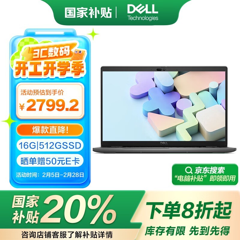 戴尔Latitude 3550笔记本电脑13代i5京东促销价2749元