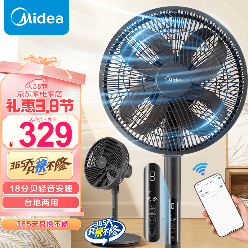 美的落地扇SDI30DS智能变频立式风扇京东活动价309元