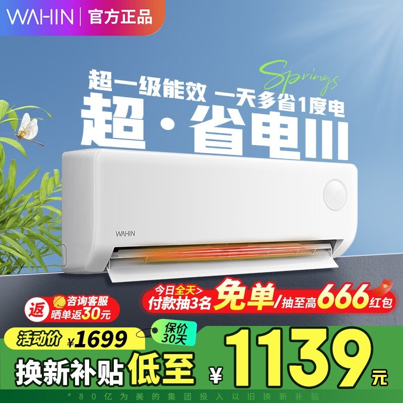 华凌1匹新能效变频空调挂机26HA1三代冷暖一级静音省电