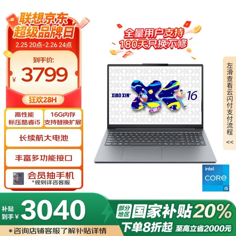 联想小新16SE笔记本电脑酷睿i5处理器轻薄本