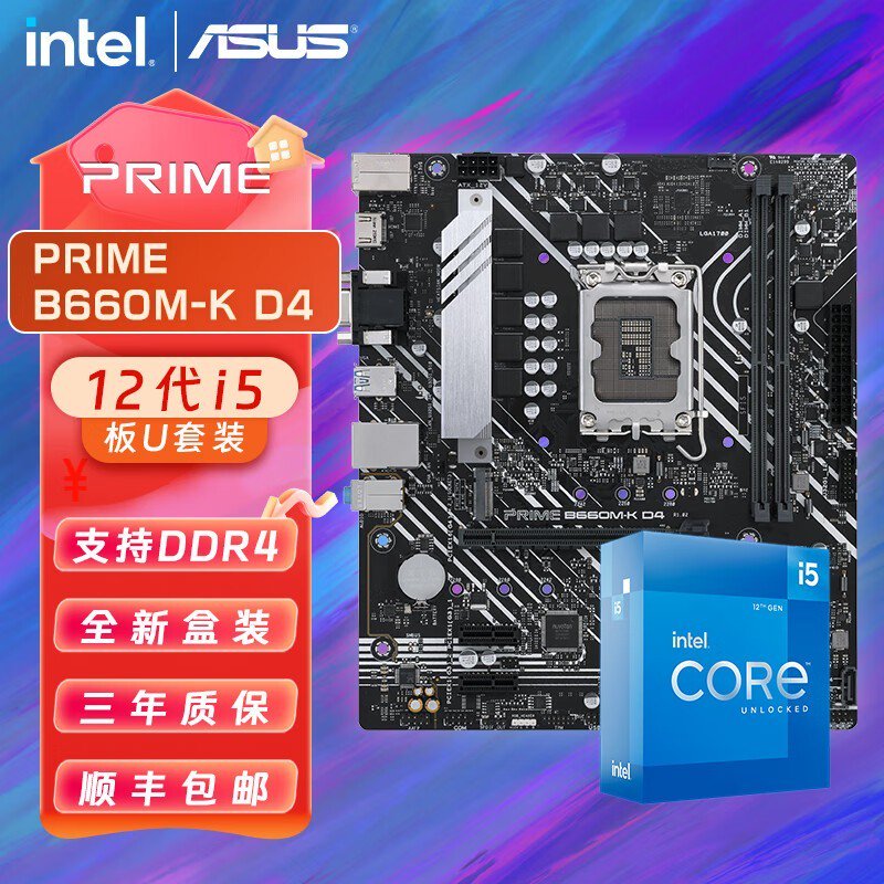 intel i5-12490F+华硕B660M-K主板板U套装京东优惠中