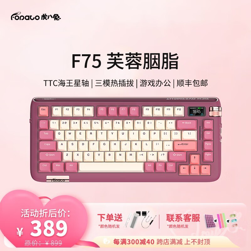 虎八兔FOPATO F75三模热插拔机械键盘满300减100到手290元