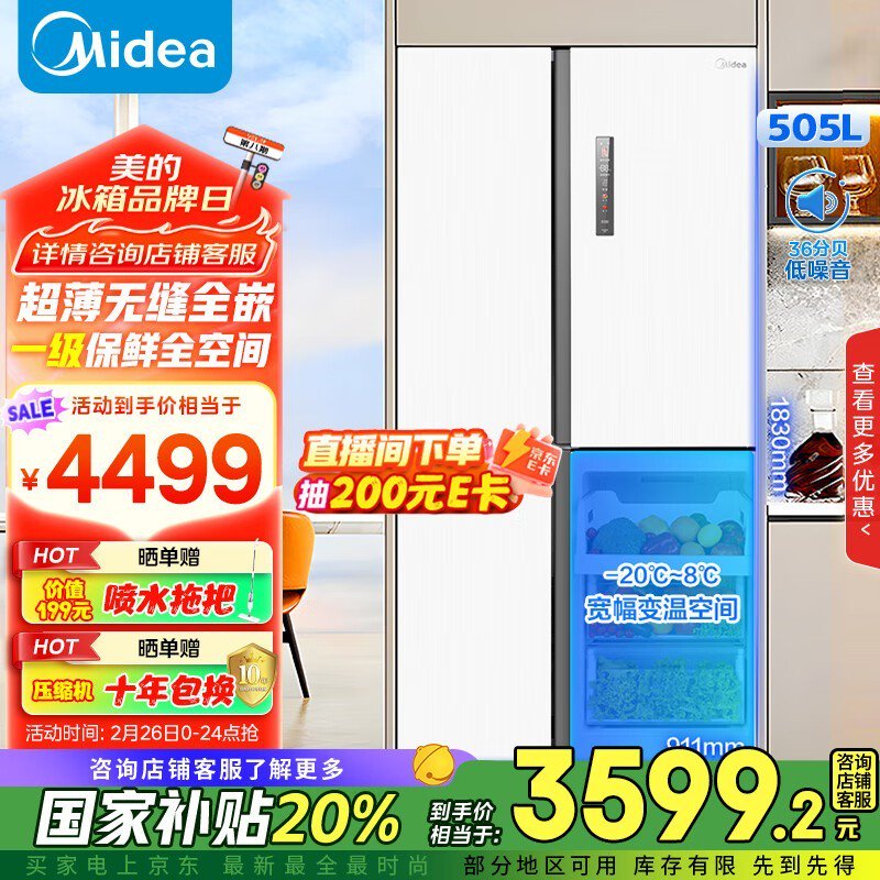 美的505升对开门冰箱MR-530WUKPZE嵌入式白色促销