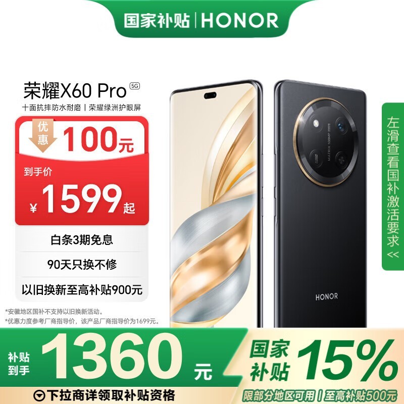 荣耀HONOR X60 Pro 5G手机京东特惠仅1342元