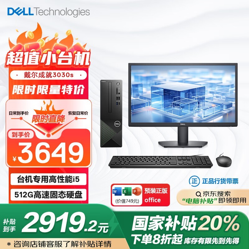 戴尔成就3030S台式机12代i5-12400京东到手3449元