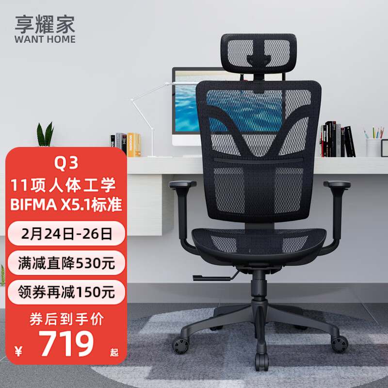 享耀家WantHome Q3人体工学椅幻影黑标准版电脑椅