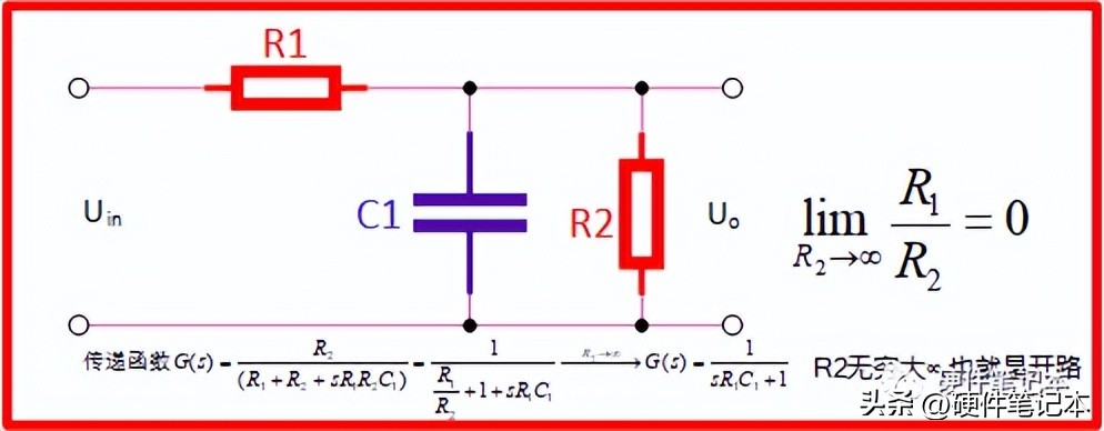 这个电路,我们对并联在C1上的R2取值为无限大,我们将R2取值无穷大后,只需要把传递函数简单化简后求极限,则电路重回到开头的RC电路,传递函数和RC低通电路相同。