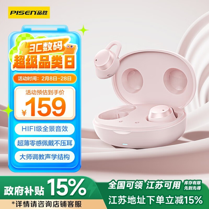 甜蜜蜜桃粉设计,品胜BHD-TW18蓝牙睡眠耳机:轻盈舒适,长续航助您安眠不凡