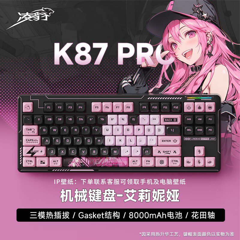 凌豹K87 Pro艾莉妮娅三模机械键盘花田轴RGB灯效