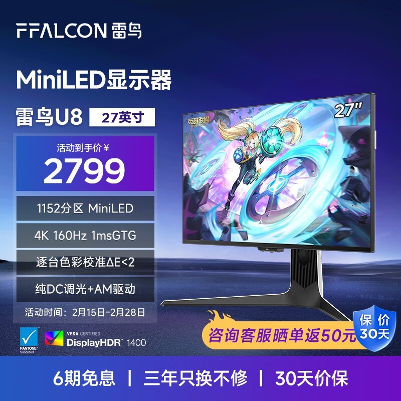 雷鸟U8 2025显示器京东特惠仅2722元支持双同步技术