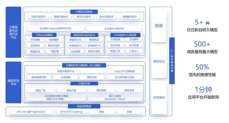 作为面向企业级模型开发与管理的一站式服务平台,万象平台具备模型管理、精调、推理、评测等全方位功能,可提供商汤“日日新”大模型,以及包括DeepSeek系列模型在内的几百种开源大模型,做到开箱即用,仅需一分钟就可以搭建起整个应用开发的pipeline。随后,通过快速的搭建、试错、上架、迭代,以及使用,实现从应用开发到迭代的完美闭环。