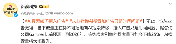 尽管如此,业内人士仍然认为,AI搜索广告的接入只是时间问题。随着AI技术的不断进步和用户对AI搜索的接受度不断提高,AI搜索广告有望成为新的增长点。