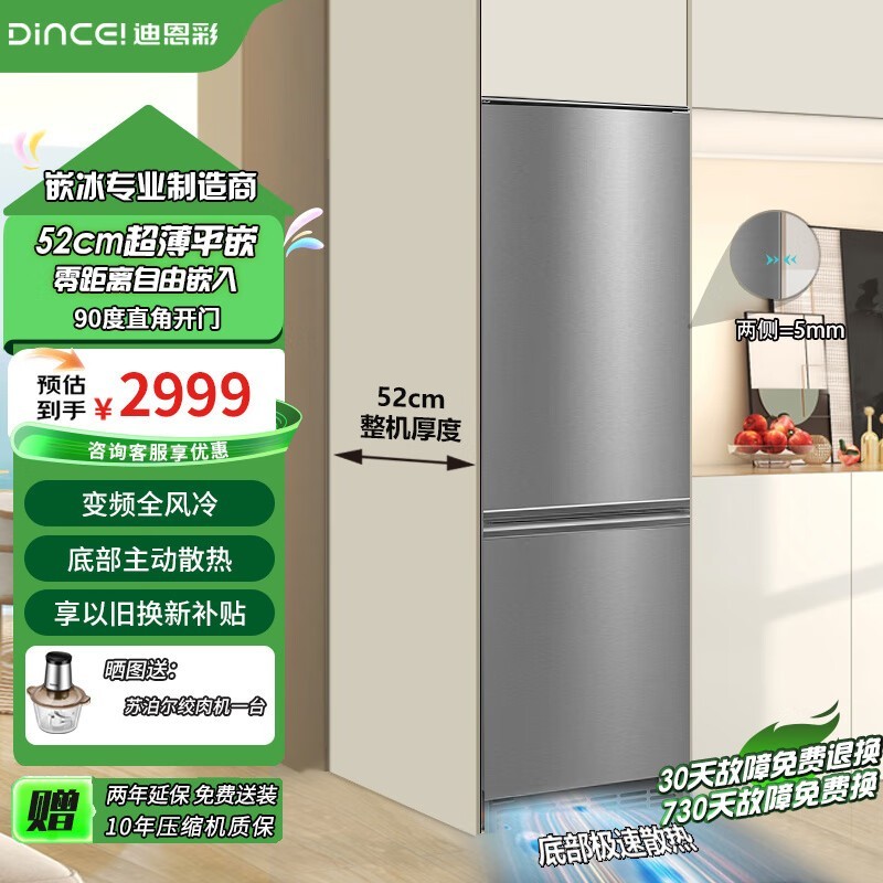 迪恩彩超薄52cm冰箱:230L全风冷无霜保鲜,静音节能,仅售3099元