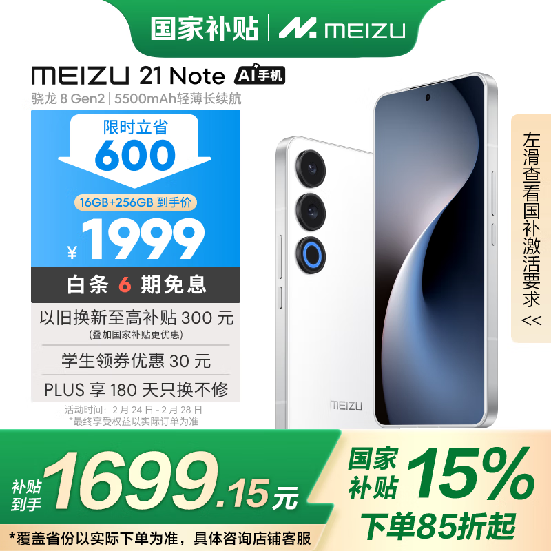魅族21 Note 5G手机大促销,16GB+256GB配置仅1969元!