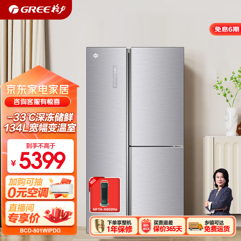 格力高效节能大容量T型三门冰箱,501L净味保鲜空间,静音运行,仅售5399元