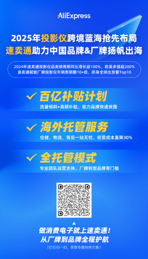 据速卖通消费电子行业负责人介绍,2024年速卖通投影仪品类销售额同比增长超100%,欧美多国同比增长超200%,超短焦、4K高清、智能语音等中高端产品占比近半,推动中国智造向价值链上游攀升。据悉,Magcubic的成功吸引了越来越多高端投影仪品牌向速卖通抛出橄榄枝,多个投影仪龙头品牌已在洽谈官方入驻。