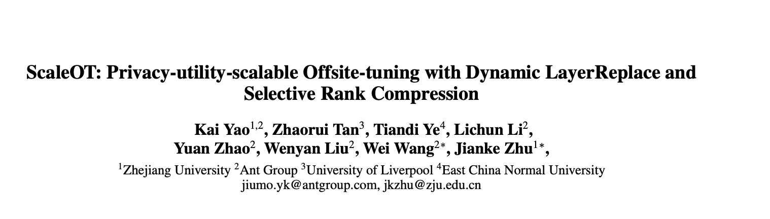 近日,在全球人工智能顶级学术会议AAAI 2025期间,由蚂蚁数科、浙江大学、利物浦大学和华东师范大学联合团队提出了一种创新的跨域微调(offsite-tuning)框架——ScaleOT,该框架可实现在模型性能无损的前提下,将隐私保护效果提升50%。与知识蒸馏技术相比,Scale OT显著降低了90%的算力消耗,为百亿级参数模型的跨域微调提供了一种高效、轻量化的解决方案。这篇论文以其创新性入选了全球AI顶会AAAI的oral论文。据了解,本届AAAI大会共收到近13000篇论文,被选中做口头报告的论文比例仅4.6%。