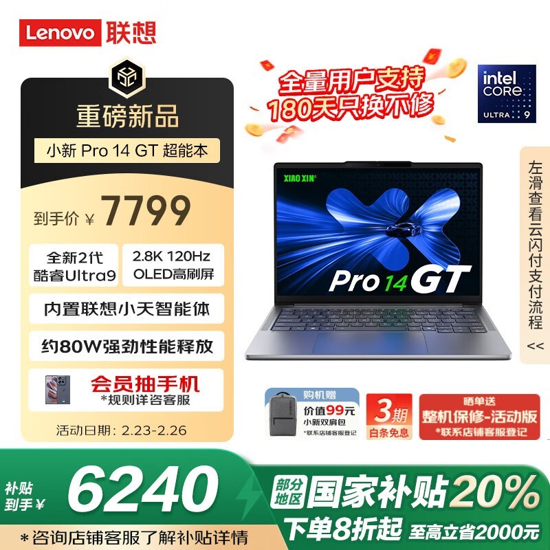 联想小新Pro14GT笔记本电脑二代酷睿Ultra版国家补贴8折