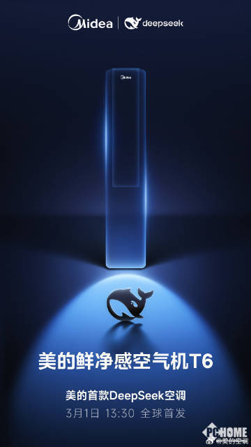 美的官宣首款DeepSeek空调来了,美的鲜净感空气机T6将在3月1号全球首发,将接入DeepSeek大模型。