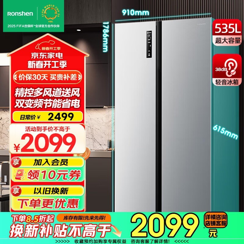 容声535升双变频风冷无霜冰箱BCD-535WD11HP仅1479元
