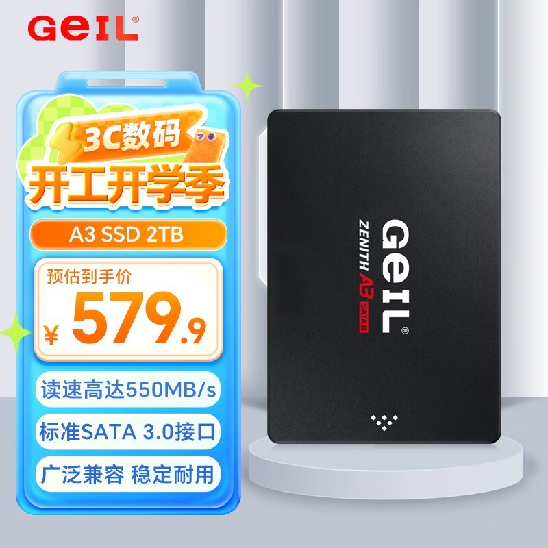 金邦GeIL2TBSSD固态硬盘读写550MB/S大容量存储