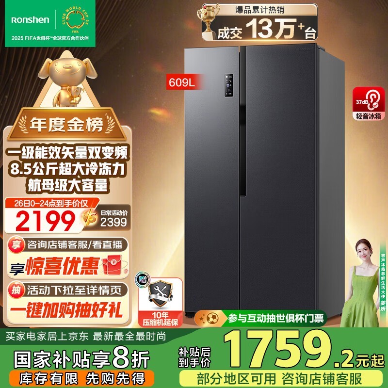 容声净味系列对开门冰箱609升大容量京东优惠价1744元