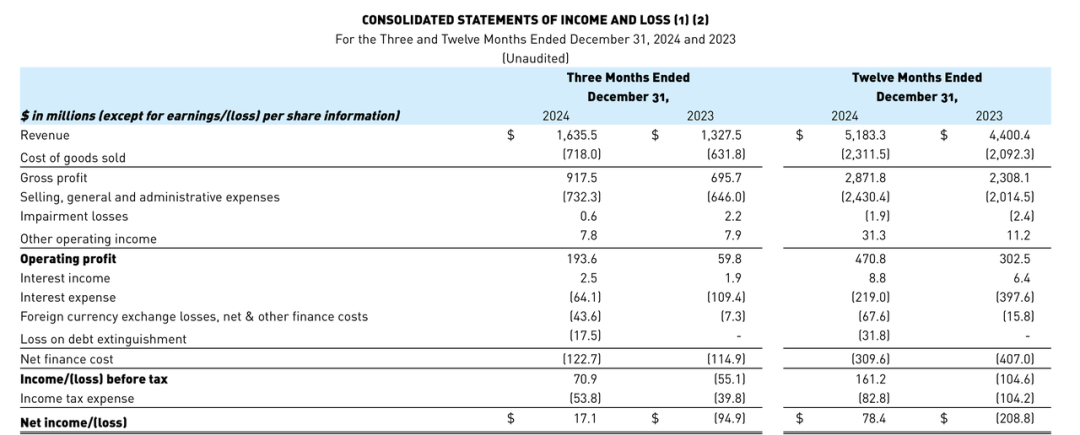 在营业利润方面,2024年亚玛芬增长了56%,达到4.71亿美元;调整后的营业利润增长了33%,达到5.77亿美元,其中包括2024年收到的2400万美元政府补贴(2023年补贴为400万美元)。