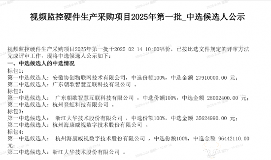 日前,中国移动采购与招标网发布“视频监控硬件生产采购项目2025年第一批”中选候选人名单。项目规模不小,都有哪些厂商成功中标呢?