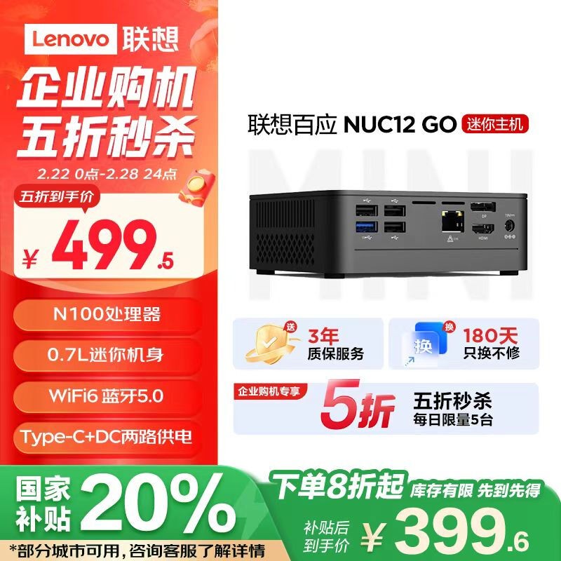 联想Lenovo百应NUC12 GO迷你主机秒杀价399元