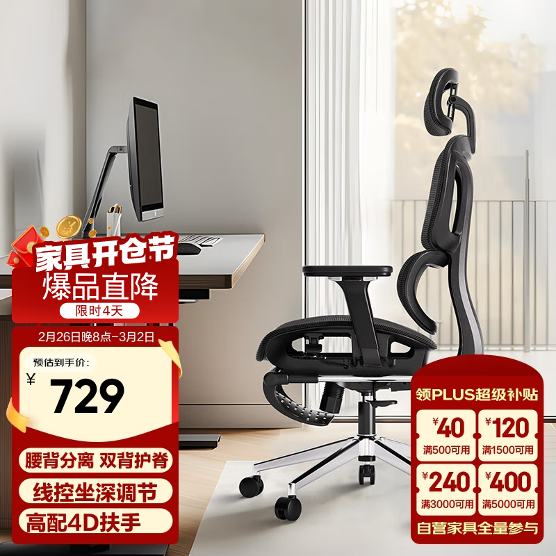 网易严选小蛮腰S9Pro人体工学椅黑色带搁脚款544元到手