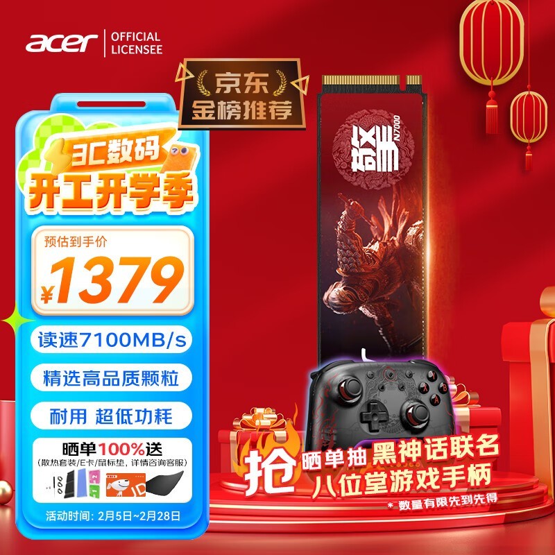 宏碁4TBSSD固态硬盘N7000系列读取速度7100MB/s仅1379元