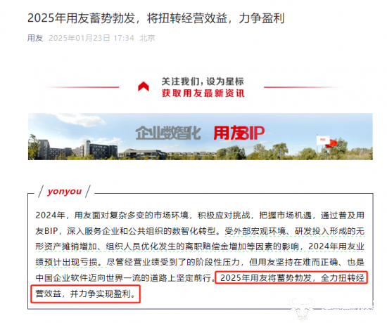 虽然2024年预计亏损扩大,但从公司角度来看,用友对于2025年的信心还是蛮足的,用友网络称,“2025年将蓄势勃发,全力扭转经营效益,并力争实现盈利”。