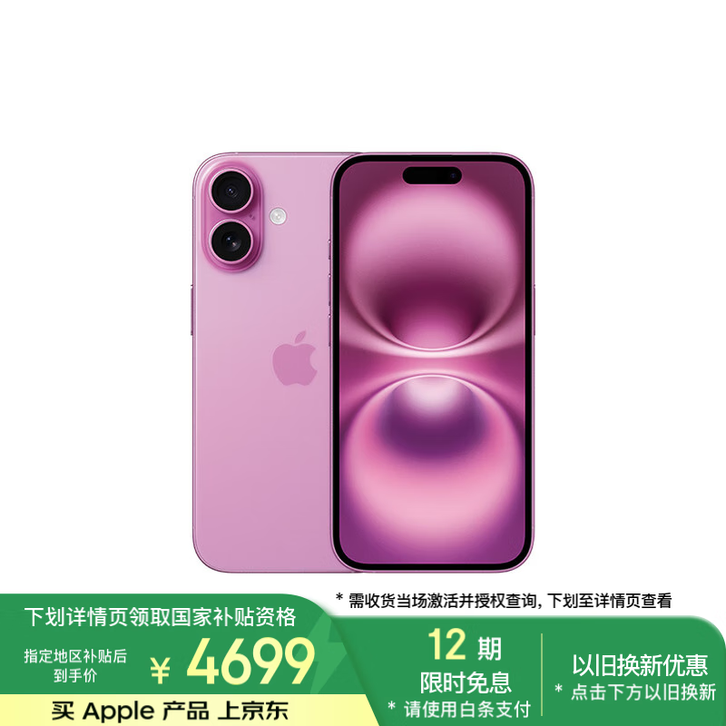 苹果Apple iPhone 16 5G手机京东活动价4699元抢购