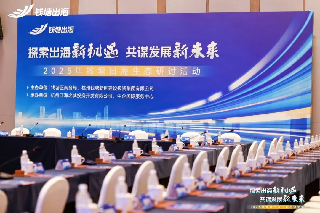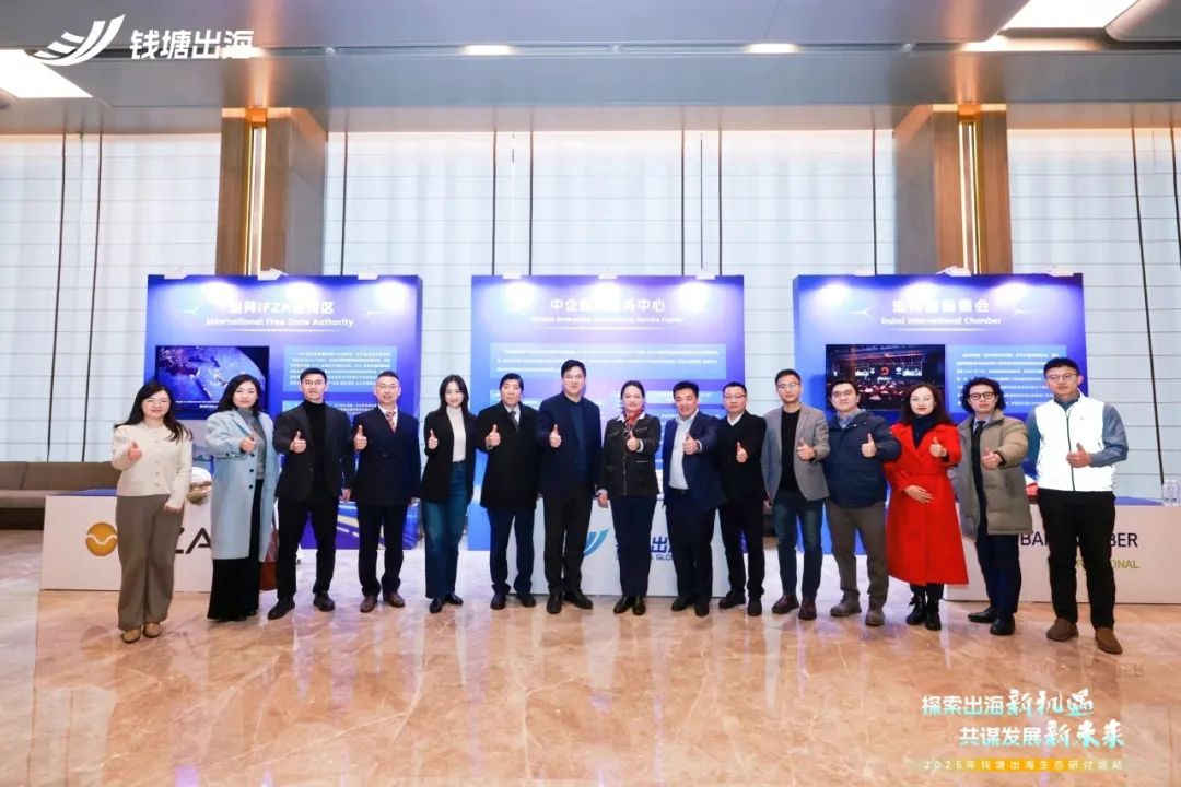在这一背景下,2月25日,“2025年钱塘出海生态研讨活动”在杭州钱塘区举行。研讨活动由钱塘区商务局和杭州钱塘新区建设投资集团有限公司主办,杭州江海之城投资开发有限公司与中企国际服务中心承办,聚焦出海最新趋势、产业政策解读、企业出海痛点等关键议题,特邀商务部专家、迪拜商会与IFZA自贸区代表进行主题宣讲,50余家出海企业及专业服务机构在现场进行深入互动交流。