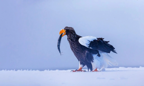 《日本北海道罗臼的虎头海雕捕食》