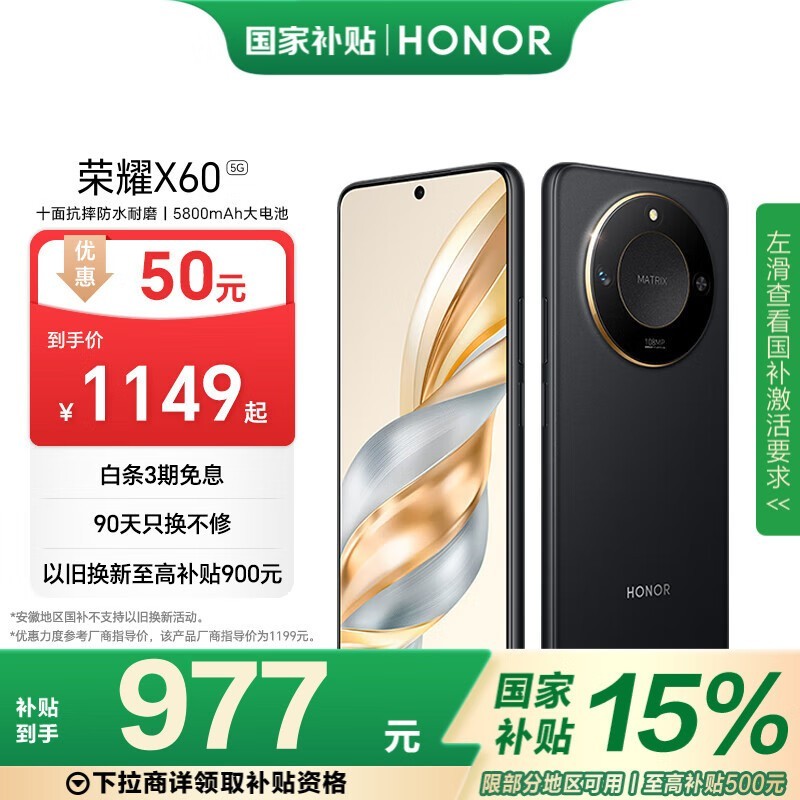 荣耀X60 5G手机直播特惠仅976元享多重好礼