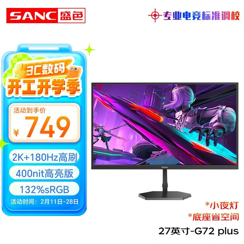 SANC 27英寸电竞屏,2K分辨率180Hz刷新率,补贴后仅632元
